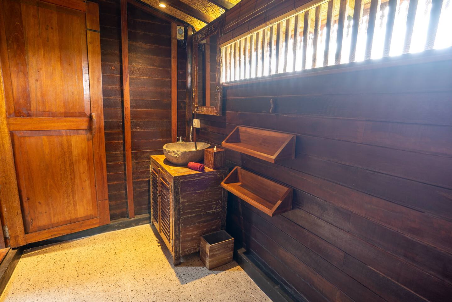 Rumah Elfi has its own lockable entrance. The three rooms can also be locked. ***** THIS IS VERY IMPORTANT: The regular check-in time is from 2 pm to 10 pm. We also have a safe lock for the key for late arrivals and in case of delays, but we MUST know your approximate arrival time so that we can prepare everything accordingly. *****
